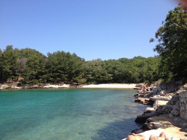 Apartament complet echipat la parterul unei case de familie în satul liniștit Pinezići, situat la 15 minute de mers cu mașina de orașele Krka și Malinska și la 20 de minute de aeroport. Apartamentul are o curte mare, situat la primul rând de la mare, la doar 300 de metri distanță de plajă până la plajă, unde există două baruri de plajă și un aquapark pentru copii. În sat există două magazine la o distanță de 100 de metri de apartament, iar distanța până la restaurant este de 1 kilometru. Apartamentul este ideal pentru familiile cu copii care doresc să-și petreacă vacanța în pace departe de mulțimile orașului