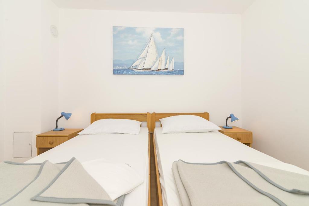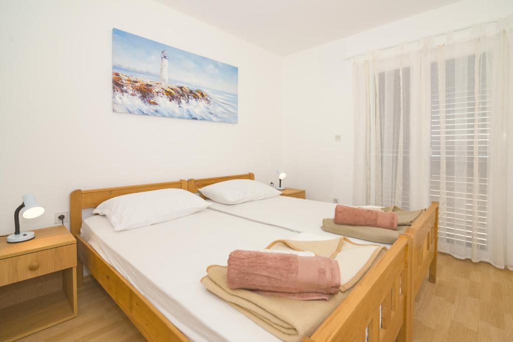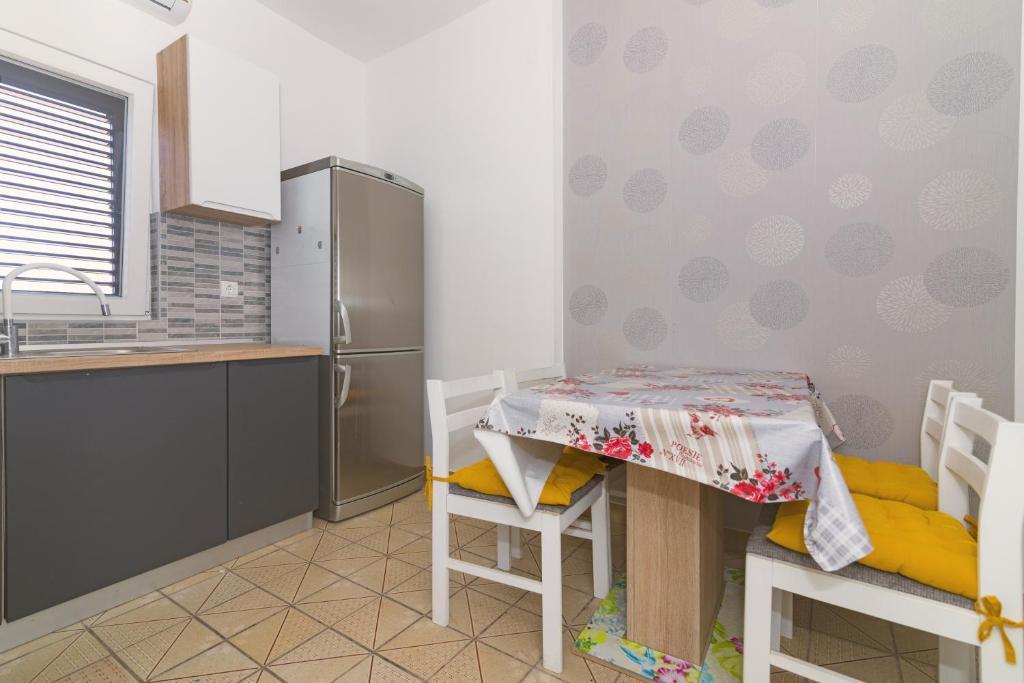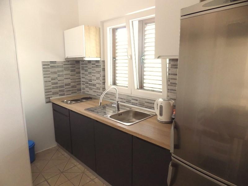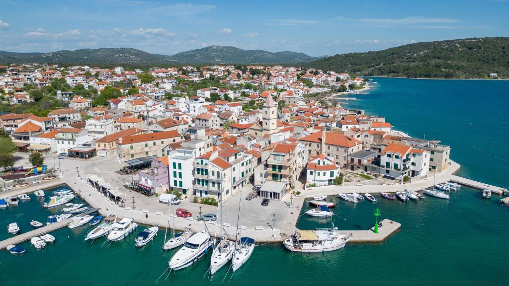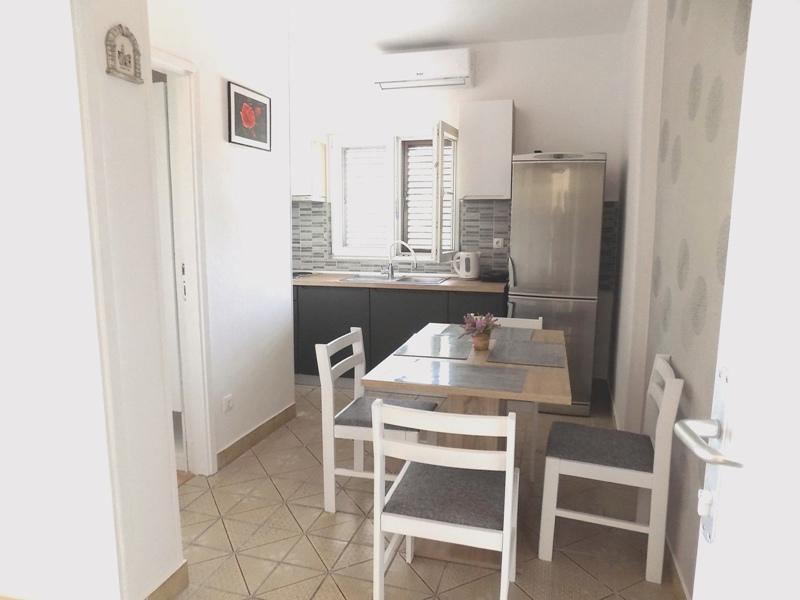 Apartamentul este situat intr-un bloc rezidential la etajul 1. Terasa oferă vedere la mare și la plajă, care se află la doar câteva minute de mers pe jos de cazare. Apartamentul este format dintr-un hol care duce la living si bucatarie. În living există un pat extensibil. Livingul are iesire pe terasa. Dormitorul cu pat matrimonial este situat in partea de nord a apartamentului, cu vedere la parcare, nu este expus la soare toata ziua, deci este placut sa stai in interior. Baia este dotata cu dus si dispune de masina de spalat rufe. Pirovac este un oraș mic, centrul se află la câteva minute de mers pe jos, așa că nu trebuie să folosiți mașina, există parcare gratuită în fața blocului.