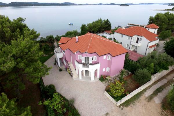 Casă recentă pe plajă cu 3 apartamente moderne, cu o capacitate totală de până la 16 persoane. Amplasat într-o zonă liniștită a golfului, unde marea este suficient de caldă pentru a înota în orice parte a sezonului și la doar 1,5 km de centrul orașului Pirovac, cu o plajă frumoasă în fața casei, șezlonguri private și duș în aer liber, veți fi încântați la prima vedere. Vederea terasei / balconului se întinde peste golf, insule și cel mai frumos apus de soare, atingând în același timp arome strălucitoare de plante mediteraneene, măsline și flori din grădina privată. Toate apartamentele sunt dotate cu aer condiționat, cu acces gratuit la internet Wi-Fi, complet echipate cu toate aparatele și aparatele necesare, vase, ustensile, prosoape și lenjerie de pat, iar pentru toți oaspeții în proprietate se oferă parcare gratuită.