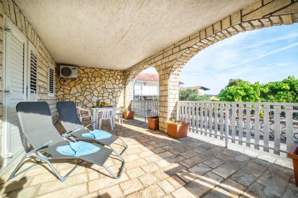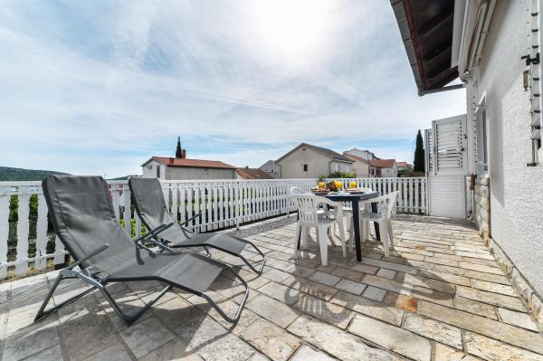 Vila Inima Croației se află la 100 de metri distanță de mare și se întinde pe o suprafață de 187 de metri pătrați, cu parcare privată acoperită sunt incluse, și WiFi-em și aer condiționat în ambele apartamente. vă va oferi o experiență reală a Croației și Dalmației. Cu apus de soare și răsărit vă puteți bucura de cina împreună pe două terase acoperite și vedere la mare. In curtea vilei se poate folosi un grătar privat. Vila este formata din doua apartamente si doua terase de 90m2, la parter este un apartament cu 4 paturi 2, iar la etaj este al doilea cu 2 paturi 5. Este posibil de a închiria vila intreaga sau apartamente individuale. Vila este situată într-o zonă liniștită din Pirovac, unde plaja este de doar 100 m și 650m la centrul orașului. Este ideal pentru cei care doresc să experimenteze o vacanță de reală și de vară în Croația. Pirovac are tot ce ai nevoie, la 100 de metri este o plajă cu pietriș, ideale pentru familii. Pirovac este conectat la toate liniile de transport și aeroportul din Zadar este de 40 de minute și este posibil de a asigura transportul prin cerere prealabilă