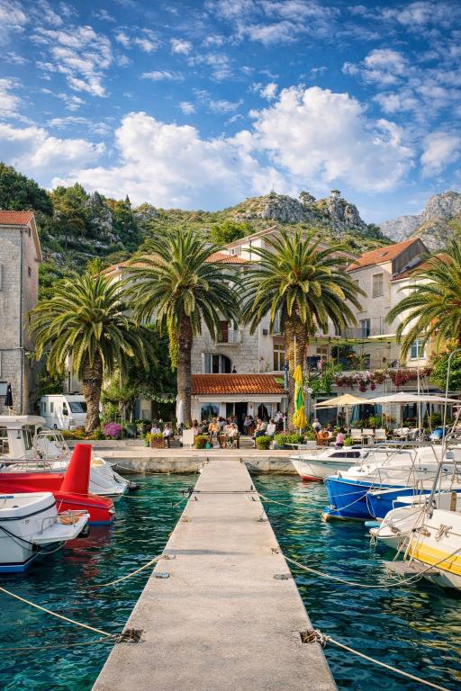 O casă veche în portul de agrement, într-o zonă mai liniștită din Podgora, care este la doar 5 m de mare. Complet renovat si decorat. Vă oferim trei apartamente, fiecare cu un dormitor separat, un living cu bucătărie și un balcon cu vedere la mare. Parcarea este asigurata si inclusa in pret. La parterul casei se află o cafenea liniștită și special decorată, unde vă puteți relaxa și savura cocktail-uri și o vedere frumoasă la mare și insule.