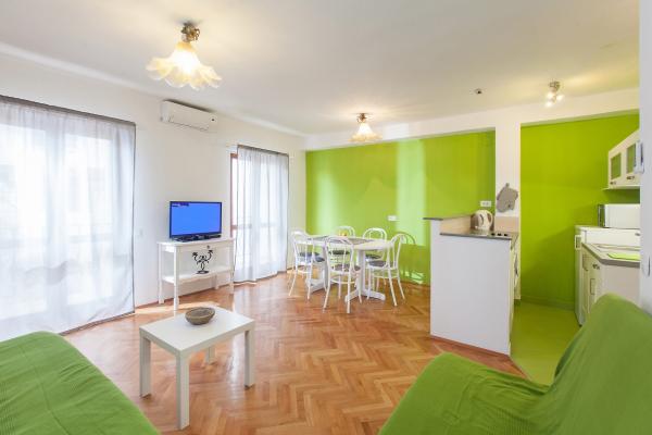 Stimați oaspeți, Credem că meritați o vacanță ... Ne amenajăm cu grijă apartamentele de la an la an și curățăm bine fiecare schimb. Sunetul greierilor din pădurea de pini din apropiere vă va adormi și vă veți petrece zilele pe frumoasele plaje din Podgora, în singurătate sau în agitație, toate pentru câteva minute de mers pe jos. Bine ai venit Katarina și Ivica cu copiii Tina, Tonči, Jadran și Dante