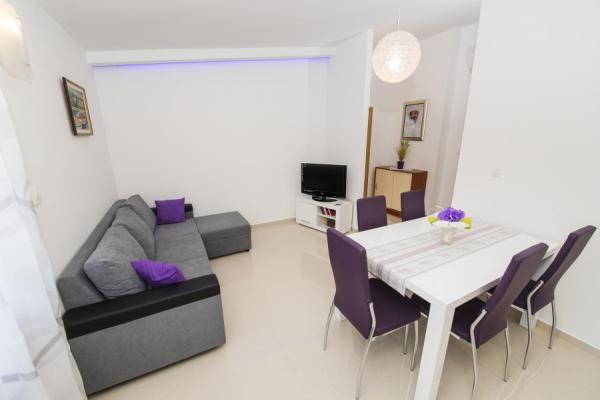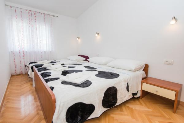 Complet echipate și apartamente moderne, într-o zonă liniștită din Podstrana, situată lângă mare; Apartamentul este situat la 30 de metri de plajă. Supermarket și produse de panificație sunt la numai 2 minute de mers pe jos. Doctor și farmacie sunt la 20 de metri distanță. Apartamentul are 2 balcoane, 2 dormitoare si 2 paturi suplimentare pentru patru persoane. Există două bucătării și două intrări, deci este potrivit pentru două familii.