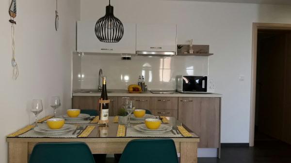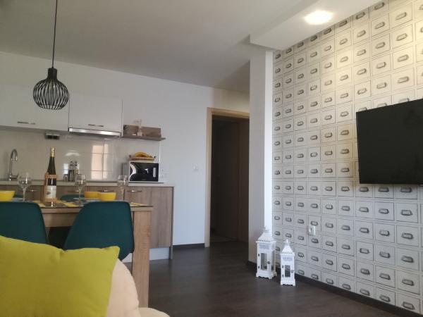 Apartamentele sunt situate Sucur în Podstrana. Marea este la o plimbare de 5 minute, la 200 de metri. Ei au o vedere frumoasă la mare, plaja, insule, orașul Split. In apropierea apartamentului veti gasi pizza, restaurante, magazine, cafenele, brutării și altele asemenea. De asemenea, în imediata vecinătate a hotelului Le Meridien Lav. Foarte ușor de gestionat. Transportul public pleacă la fiecare 30 de minute și există posibilitatea și de a închiria o mașină sau de a lua un taxi. Podstrana este situat la 7 km de orașul Split. In Split, există multe atracții, cum ar fi Palatul lui Dioclețian, subsol, parcare Marjan.