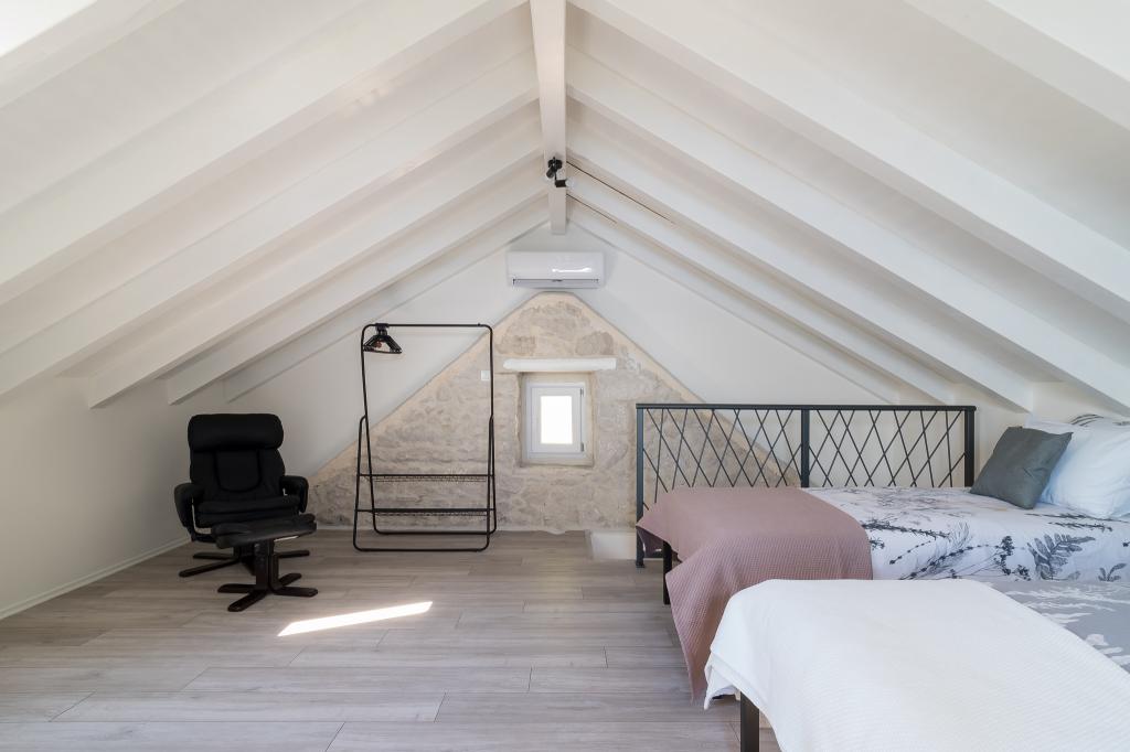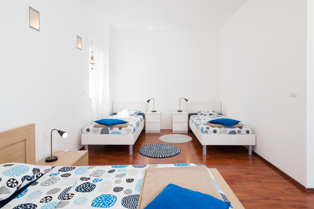apartament duplex complet mobilat de 90 de metri patrati in St. Martin, Podstrana la 5 minute de mers pe jos de la mare. Pentru calea de siguranță la mare merge sub promenada principală amenajate rutier. La ultimul etaj, care funcționează ca o singură cameră sunt 2 balcoane (unul la nord, iar cealaltă la sud-vest), 3 sunt paturi - 1 pat dublu pentru 2 persoane si 2 paturi pentru o persoană, iar la etajul inferior pat canapea colt pe care poate fi plasat 2 persoane. Dacă este necesar, putem oferi un pat de copii la pat poitfa.