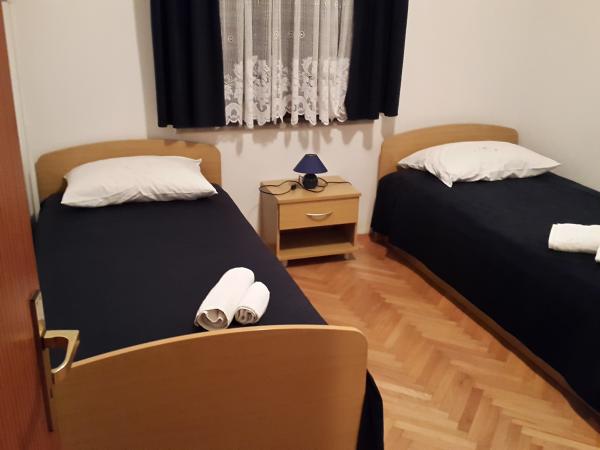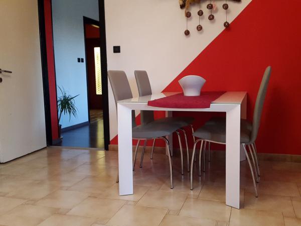 Casa noastră de familie este situată într-un cartier nou, liniștit turistic de Porec, 200 m de plajă, restaurante, magazine și 800m de centrul orașului. Ea are patru apartamente cu una, două și trei dormitoare, bucatarie, baie cu duș sau cadă cu hidromasaj, balcon și. Apartamentele au aer condiționat, TV prin satelit. Apartamentele sunt dotate cu lenjerie de pat și prosoape, plus tot ceea ce aparține în gospodărie, cum ar fi: vase, filtru de cafea, cuptor cu microunde, etc. În curte există parcare privată și un loc de joacă pentru copii.