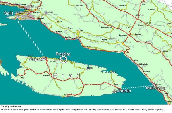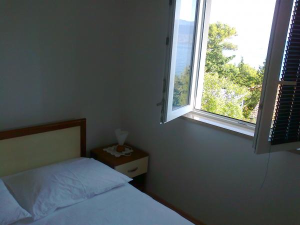 Apartament frumos, cu vedere la mare, situate într-o parte liniştită a Postira. Este complet echipat. Distante: Casa este situată în largul coastei Mării aproximativ 70 de metri, casa este situat la aproximativ 700 m de centru, cel mai apropiat restaurant este de cca 400 m, cel mai apropiat magazin alimentar este de cca 200 m Descrierea acasă: loc liniştit şi paşnic, în curte cu grădină şi o livadă, o grădină plină de verdeaţă, semineu la dispoziţia clienţilor, a casa, cu parcare privată. Dacă doriţi să aducă animale de companie va rugam sa anuntati in prealabil. Servicii suplimentare: rufele în casă, la cerere