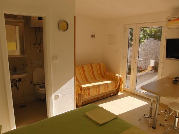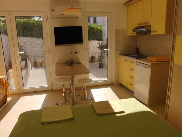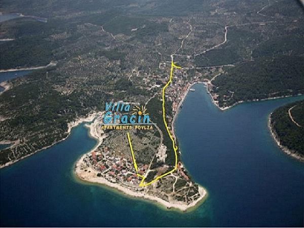 Piatră vilă dalmată într-o locaţie atractivă şi liniştită în Povlja de pe insulă, în apropiere de plajă şi 300 m de centru. Trei camere si un apartament studio situat pe teren. Toate apartamentele sunt proiectate pentru 2 adulţi şi capacitatea maximă este de 3 adulţi, sau 2 adulţi şi 2 copii sub 12 ani. O treilea adult sau doi copii în toate apartamentele dormi pe o canapea în camera de zi. Toate apartamentele au intrare separata si terasa separat cu cameră de zi, dormitor cu pat dublu, bucătărie cu zonă de luat masa şi trăind într-o singură cameră, şi baie cu duş. TV prin satelit, aer condiţionat, conexiune la internet wireless şi un seif sunt echipament standard pentru toate apartament şi nu este acuzat, sau taxe locale. Posibilitatea de a folosi masina de spalat comune în zona comună la nivelul solului se plăteşte suplimentar.