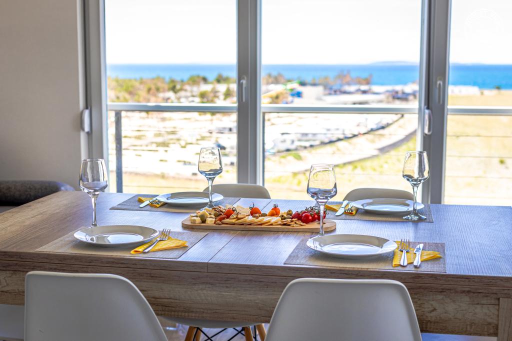 Apartament modern cu două dormitoare în Povljana, cu vedere frumoasă la mare și o piscină comună. Este un loc ideal pentru o vacanță în familie - două băi, o bucătărie complet utilată, un living spațios și balcoane în fiecare cameră. Wi-Fi gratuit, aer condiționat, mașină de spălat și Netflix asigură confortul de acasă. Este situat la doar câțiva pași de plajă, iar oaspeții au la dispoziție parcare privată. Locația excelentă și liniștea retrasă fac din această unitate de cazare alegerea potrivită pentru relaxare și bucurie sub soarele dalmat.
