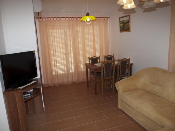 Apartamentele Pečnik constau din 5 apartamente de la 51 m2 la 57 m2, apartamentele sunt pentru 4 persoane situate în două camere separate (2 2). In interiorul casei este o cameră de zi și bucătărie și o baie spațioasă. De la ieșirea de pe terasa unde frumoasa vedere la mare. Apartamentele sunt dotate cu aer condiționat. Echipamente de bucătărie: Feluri de mâncare pentru prepararea și servirea alimentelor și a băuturilor, tacâmuri, frigider, congelator, de apă caldă și rece, cuptor și plită. Echipament de baie: duș cu hidromasaj, WC Echipament de camera de zi: TV LCD HD, canapea Accesul la clădire: Accesibilitatea la clădire, un spațiu de parcare. Bune mijloace de transport in comun plaje: Numeroase plaje de nisip sunt de apartamente 100-800 m. Posibilitatea de a inchiria șezlonguri, bărci cu pedale și umbrele de plajă. trafic: Distanta din centrul orasului este 250 m, distanta de la magazin alimentar este de 200 m, distanta de la oficiul poștal 100 m, distanta de la farmacie este 150 m, distanta de la ambulanta este 500 m, distanta de la cel mai apropiat schimb valutar 50 m, distanta de la restaurante, pizzerii și cafenele 100 m. Informații de trafic: Distanta de la statia de autobuz este de 250 m, distanta de la statia de tren 50 km - Zadar, distanta de la cel mai apropiat aeroport este de 50 km - aeroport: Zadar, distanta de la bac - 30 km, numele celui mai apropiat bac: Žigljen. Alte observații: Oaspeții de sosire după 14: 00h, plecare până la 10: 00h. Animalele de companie nu sunt acceptate.