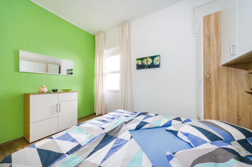 Apartament confortabil cu doua camere la parterul unei case private, primul rand la mare, in partea de sud a Prek. In imediata apropiere se afla o piata, piata de peste, macelarie, restaurant, pizzerie, banca, farmacie, brutarie si patiserie, debarcader, benzinarie. Distanța de la centrul orașului Preko și portul de agrement Preko este de 300 de metri, la o plimbare de lungo mare. Loc de joacă pentru copii la 300 de metri. Plaja este o combinație de nisip și pietriș, șezlonguri și umbrele sunt disponibile. O mică acostare în fața apartamentului pentru o barcă sau o barcă mică. In fata intrarii, o curte micuta ferita de soare de verdeata, cu o masa si scaune pentru a sta si a manca. Parcarea este asigurata in imediata apropiere a apartamentului.