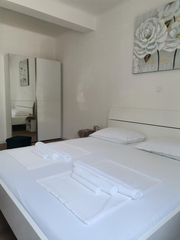Cazarea noastră este bună pentru cupluri și familii cu copii. Apartamentul mare are o terasă lungă cu vedere frumoasă la mare și la insulele din jurul Primošten. Apartamentul nostru nou, modern, cu vedere frumoasă la mare, este complet echipat cu electrocasnice noi și veți avea tot ce aveți nevoie pentru o vacanță plăcută. De asemenea, oferim o cameră ideală pentru cupluri și pentru un sejur scurt. Cazarea este situata intr-o zona foarte linistita, iar in centrul orasului (5-7 minute pe jos) sau la celebra plaja principala (3-5 minute pe jos) se poate ajunge usor si rapid. Lângă casă, avem o parcare spațioasă unde vă puteți lăsa mașina.