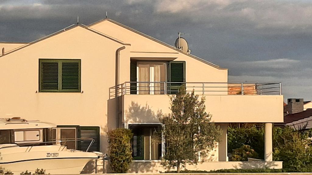 Apartamente noi, complet utilate pentru o vacanta placuta. Sunt situate într-o zonă liniștită din Privlaka, lângă o plajă de nisip cu mare caldă. Acestea constau dintr-un dormitor cu un pat dublu de 160 cm si un pat pentru copil, o bucatarie cu living cu pat suplimentar si o baie. Bucatarie dotata cu electrocasnice si masina de spalat in baie. Apartamentul MAI MARE are o terasă cu vedere frumoasă la mare și apusuri. Apartamentul MAI MIC este si el utilat complet si modern, pat in camera 140 cm, FARA TERESA.