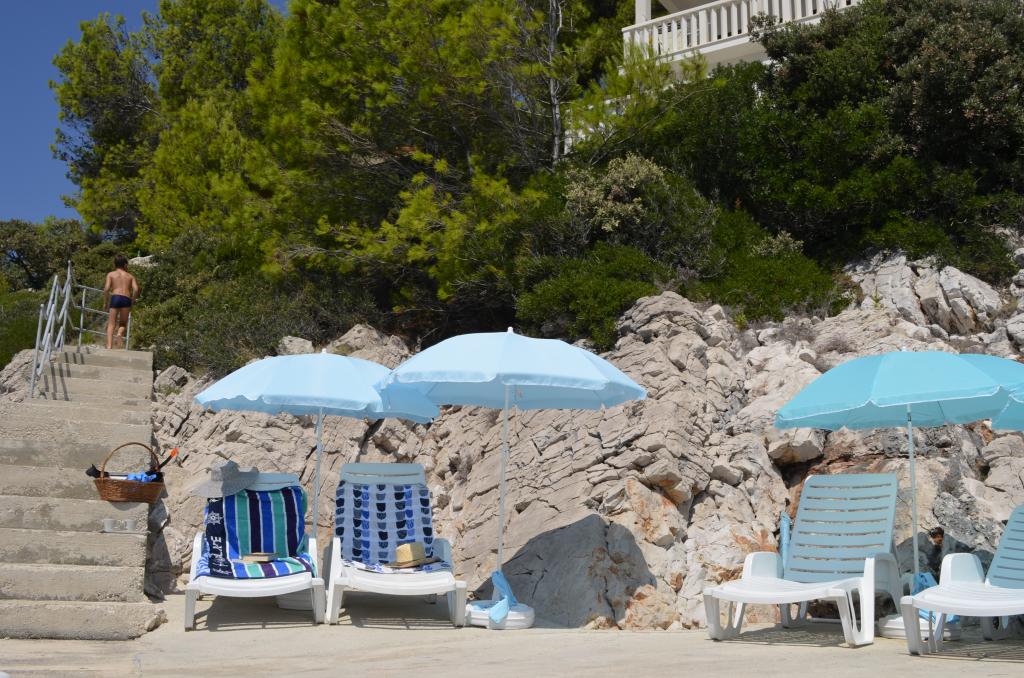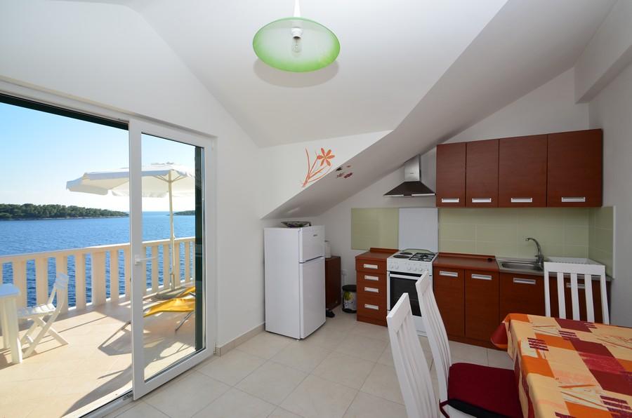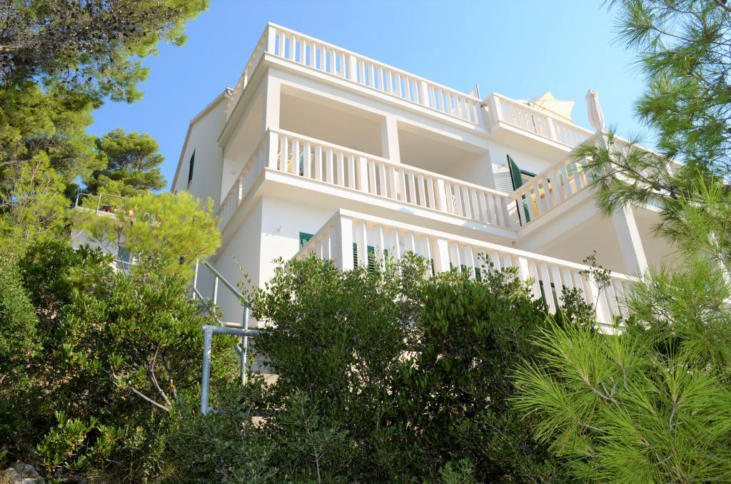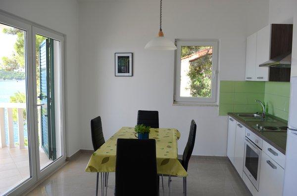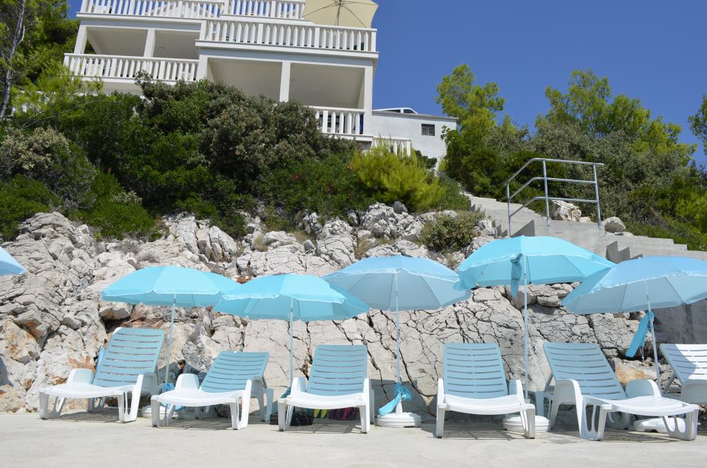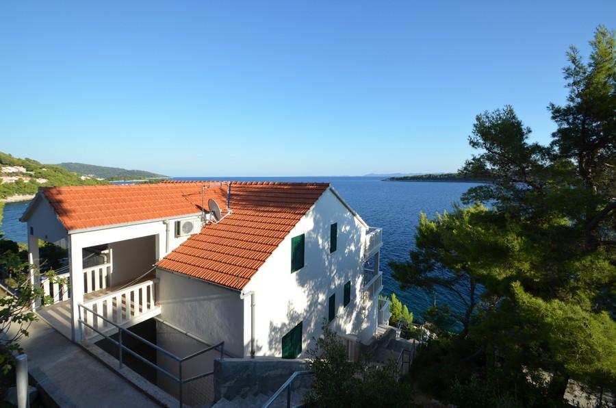Casa este situată lângă mare într-un loc liniștit. Apartamentele sunt noi și bine echipate. În fața casei este o parcare mare, liberă și confortabilă pentru toți oaspeții noștri. Fiecare apartament are o terasă proprie cu vedere la mare și insule. Există două plaje private cu umbrele gratuite și șezlonguri în apropiere. Există o școală de scufundări, o școală de navigație, o agenție de închiriere de bărci, moped, canoe, diverse restaurante, trasee frumoase de drumeții și ciclism.