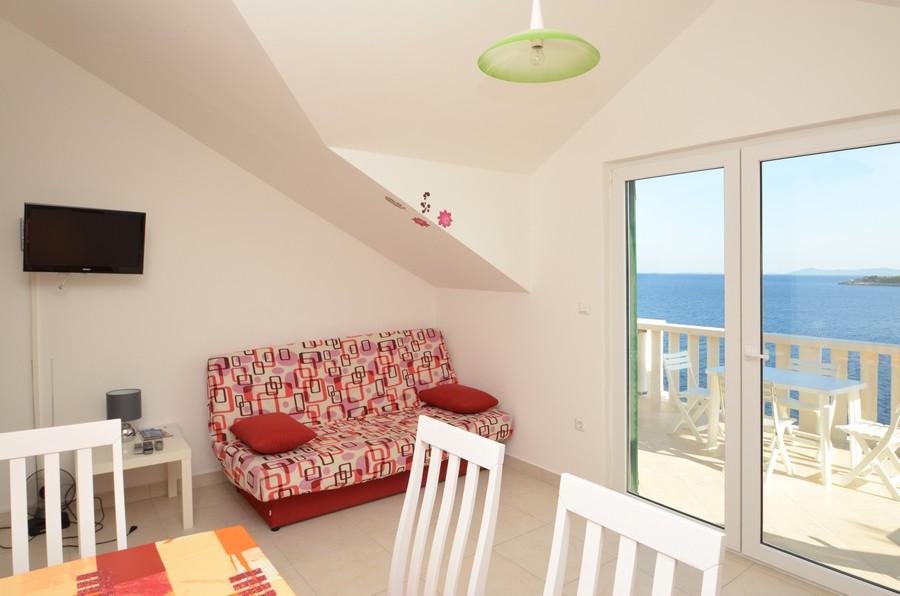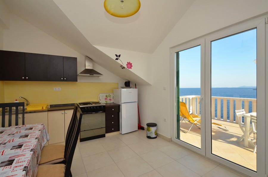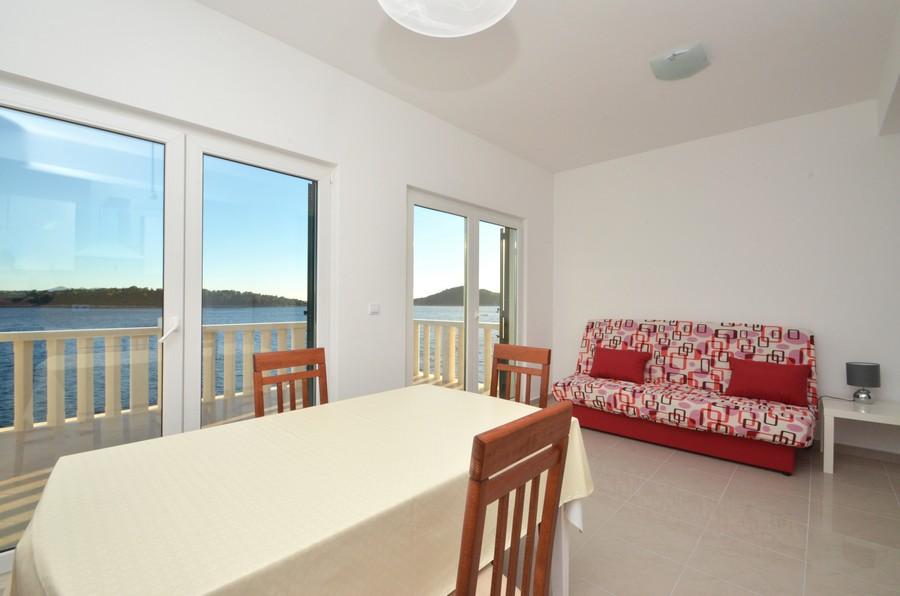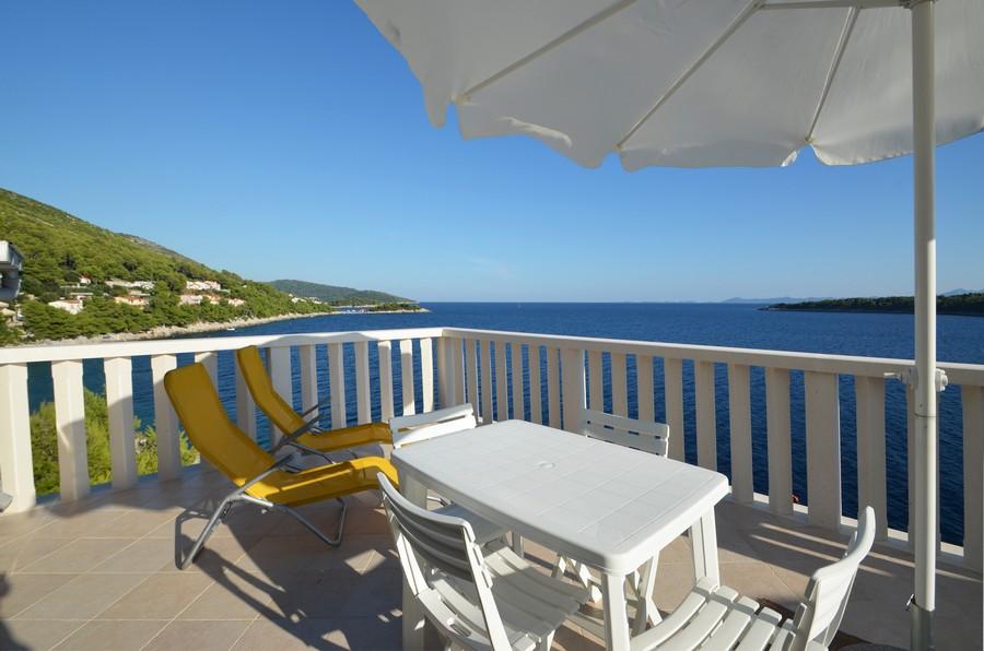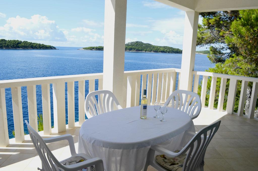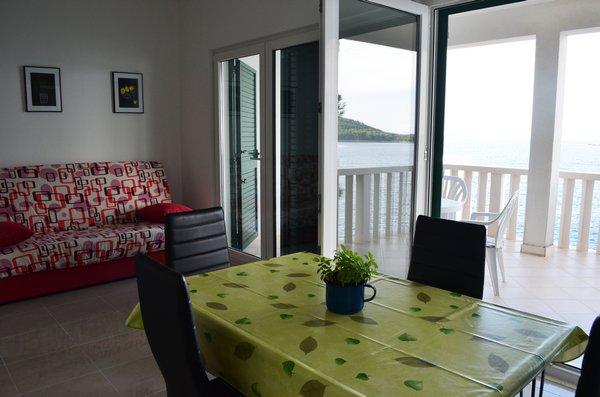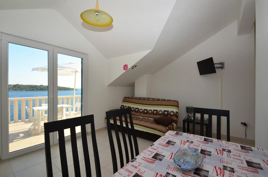 Casa este situată lângă mare într-un loc liniștit. Apartamentele sunt noi și bine echipate. În fața casei este o parcare mare, liberă și confortabilă pentru toți oaspeții noștri. Fiecare apartament are o terasă proprie cu vedere la mare și insule. Există două plaje private cu umbrele gratuite și șezlonguri în apropiere. Există o școală de scufundări, o școală de navigație, o agenție de închiriere de bărci, moped, canoe, diverse restaurante, trasee frumoase de drumeții și ciclism.