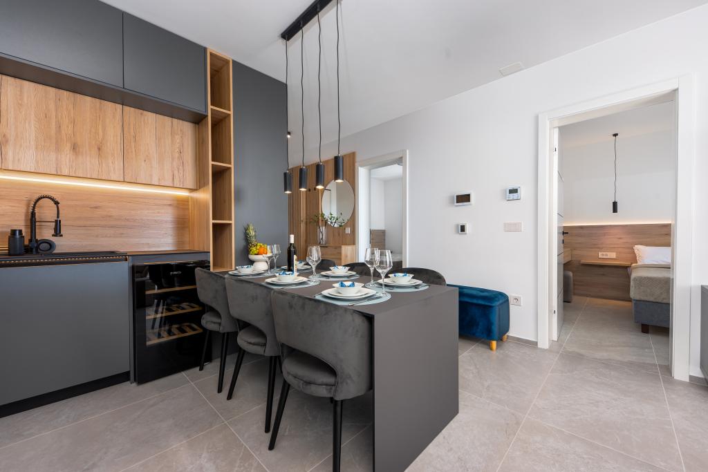 Apartamentele Sunshine-Breeze de pe strada Prilaz obali 22a din Promajna oferă apartamente complet utilate și modern, de 3 x 4+2 persoane și 3 x 2+2 persoane, într-o zonă liniștită a orașului, ideale pentru o vacanță relaxantă. Complexul este situat la doar 2 minute de mers pe jos de plaja principală. Toate apartamentele sunt dotate cu aer condiționat, Wi-Fi gratuit, parcare și terase spațioase pentru a vă bucura de atmosfera mediteraneană. Apartamentele 2+2 au vedere la mare și la Bijokovo, iar apartamentele 4+2 au vedere la mare. Apartamentele Sunshine-Breeze sunt o clădire nou construită. Toate bucătăriile sunt modern utilate (frigider cu congelator, aragaz, cuptor, fierbător, mașină de spălat vase, aparat de cafea... toate băile sunt modern dotate cu mașină de spălat, uscător de păr... Paturi boxspring de cea mai bună calitate cu saltele medicale superlux de înaltă calitate. Este alegerea perfectă pentru familii, cupluri și toți cei care doresc să se bucure de frumusețile Rivierei Makarska.