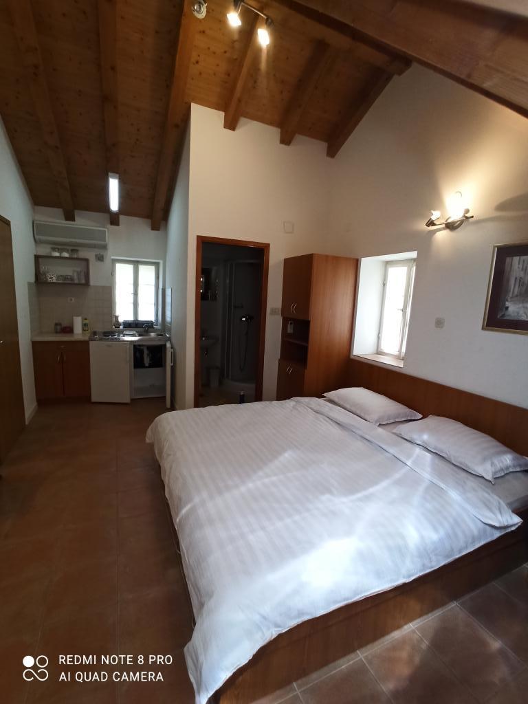 Casă veche de piatră din partea centrală a orașului. Interior renovat în stil autohton. Aer condiționat, cu băi moderne. Mansarda înaltă, complimentează căldura acoperișului din lemn. Mic balcon și terasă pentru șezut și băut cafea. Un magazin, un oficiu poștal și mai multe restaurante sunt în apropiere, iar plaja de piatră este la câteva minute de mers pe jos.