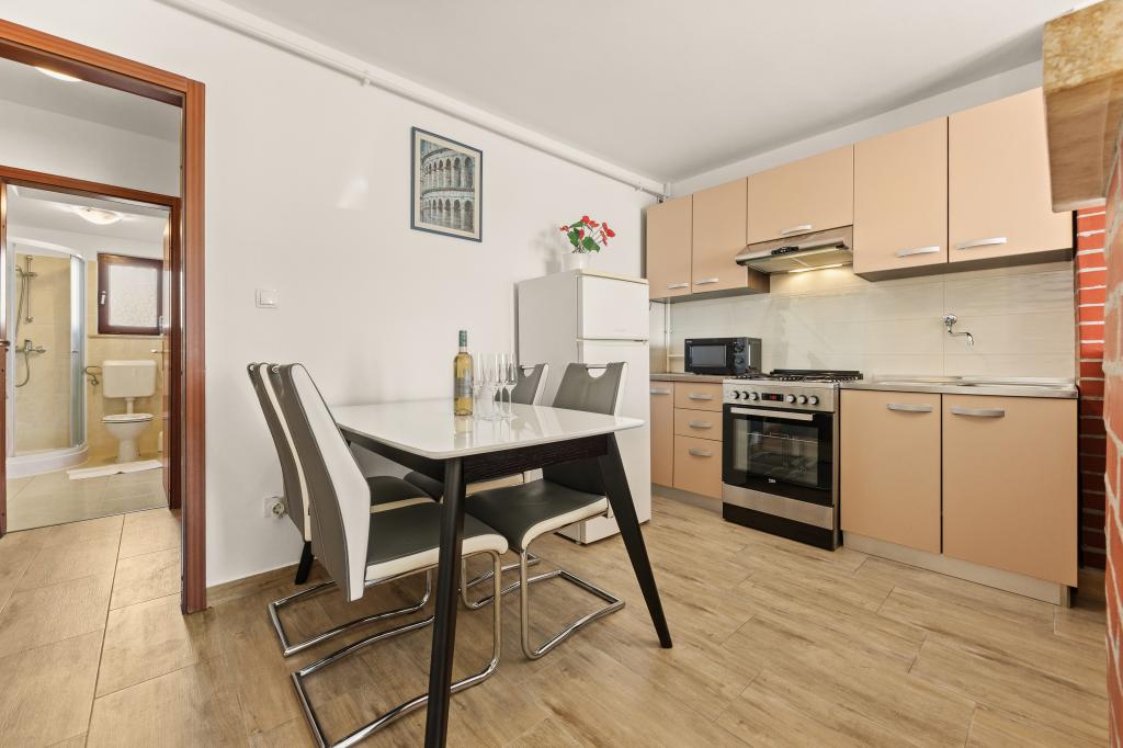 Într-o zonă liniștită a orașului Pula, există apartamente excelent amplasate, aproape de mare și de stațiunile turistice și la câțiva pași de orașul vechi. Apartamentele îngrijite și confortabile au tot ce aveți nevoie pentru o vacanță liniștită și relaxantă. Apropierea de stația de transport public vă permite să evitați aglomerația și să vă deplasați mai ușor fără a utiliza o mașină personală, pentru care este oferită parcare gratuită. Vă stăm la dispoziție pentru orice întrebări. Așteptăm cu nerăbdare sosirea dumneavoastră!
