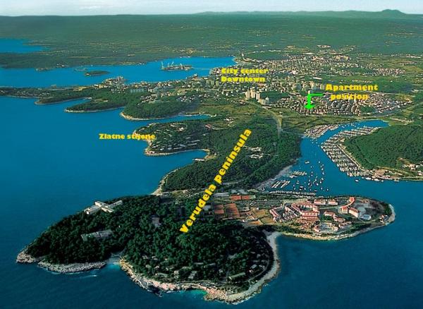 Bine ați venit la apartamentul nostru confortabil într-un nou! Acesta este situat într-o locație exclusivistă în Pula - în apropiere de sat turistic Verudela. Locul de amplasare a apartamentului este foarte liniștită și nu zgomot - ideal pentru relaxare. Cazare constă dintr-un dormitor cu două (2), paturi, care pot fi unite într-un pat dublu, un living cu o canapea extensibilă (două paturi de mărime normală 200x90), bucatarie utilata, sala de mese, baie, mare terasa / balcon cu scaune în aer liber. In fata terasa este o grădină spațioasă, cu măslini și un grătar. În imediata apropiere (<300 m), sunt: supermarket, stație de autobuz, restaurant, port, centru de tenis, biserica, farmacie, precum și multe facilități turistice din localitate Verudela. Centrul de Pula amfiteatru se poate ajunge pe jos sau cu autobuzul (7 min). Masina timp de 10 minute, în parc Kamenjak, cu ape limpezi ca cristalul și frumoase plaje. Excursie de o zi puteti vizita Parcul Național Brijuni sau Veneția. Noi credem că veți petrece o odnor plăcută cu noi.