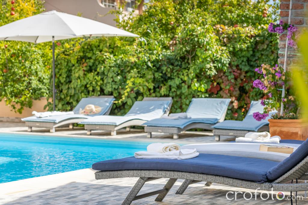 Băutură de bun venit obligatorie. O piscină frumoasă, întreținută regulat, înconjurată de scaune somptuoase, șezlonguri confortabile, umbrele, înconjurată de verdeață, o zonă zen pentru relaxare. O masă mare pentru socializare sub foișorul din grădină cu grătar, acestea sunt atuuri suplimentare ale acestei unități de cazare. Loc de parcare securizat.