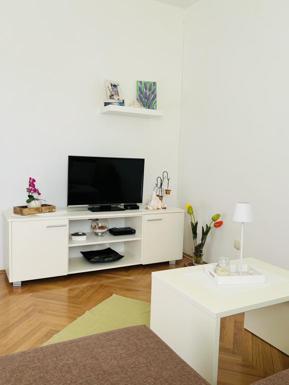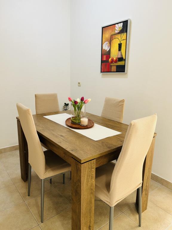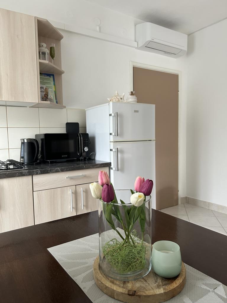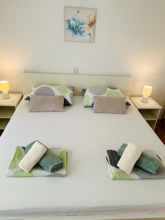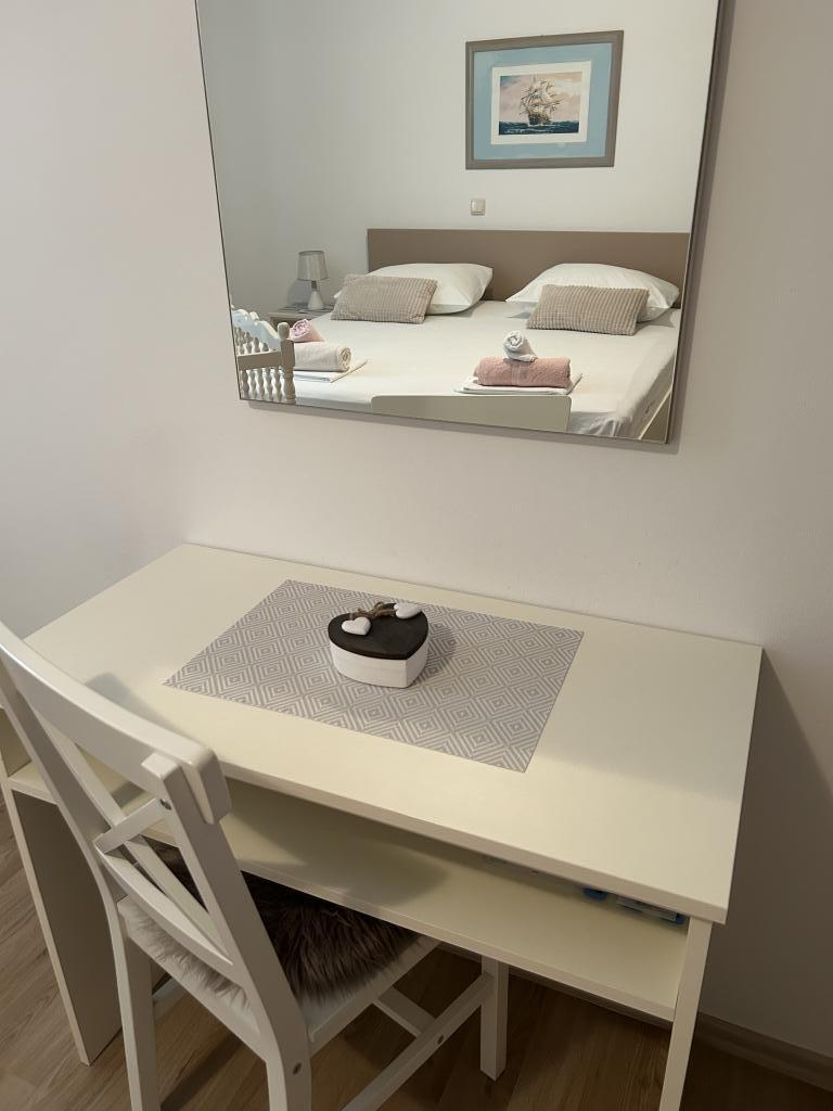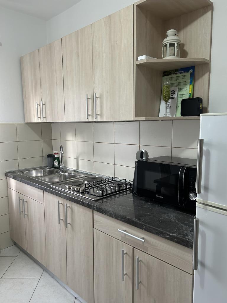 Apartamente dotate modern, într-un mediu liniştit. Apartamentele sunt situate la parter și la primul etaj. Acestea conțin un living, camere cu pat dublu, o bucătărie cu toate accesoriile necesare, o baie și un balcon și Wi-Fi gratuit. În sfera facilității există parcare gratuită, și posibilitatea de a folosi un grătar. Un magazin alimentar, o cafenea și un salon de coafură sunt situate la 300 de metri de clădire, iar alte facilități precum restaurant, ambulator, farmacie etc. sunt la 5 minute de mers cu mașina. Cea mai apropiată plajă cu pietriș este la 700 de metri, iar dacă totuși vă decideți să explorați puțin mai mult, peninsula Frkanj, care este plină de golfuri și plaje, se află la 5 minute de mers cu mașina. Orașul vechi Rab este la 20 de minute de mers pe jos de-a lungul mării sau la 5 minute cu mașina.