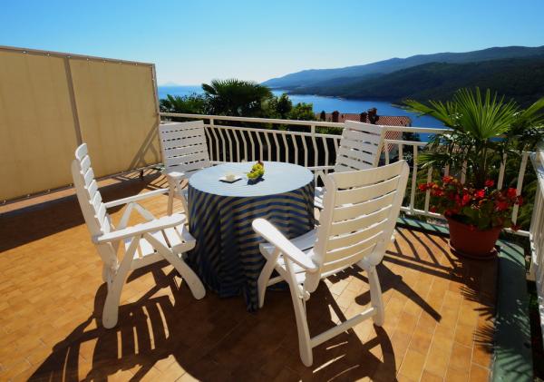 apartamente moderne, într-o zonă liniștită din Rabac complet echipate și. Obiectul senalazi 500m de centru. Terasa oferă o vedere minunată la mare, insule și golful Rabac. Prosoape și lenjerie de pat sunt incluse și se găsesc în apartament. Parcarea este disponibil și gratuit.