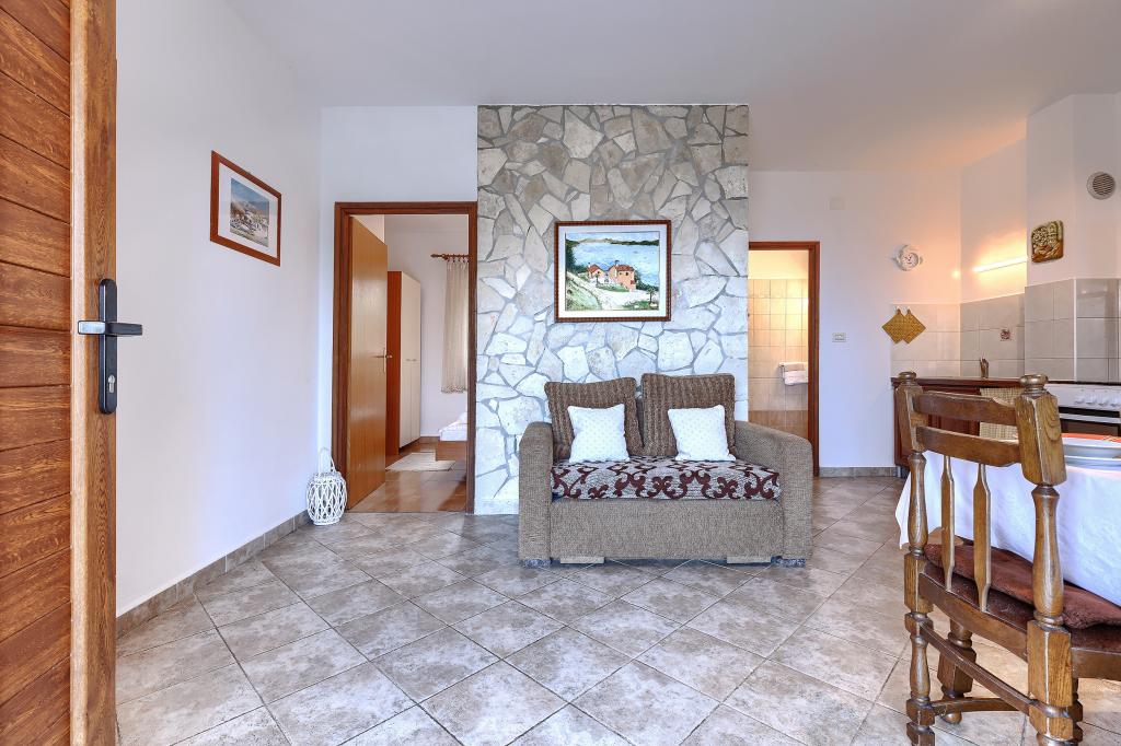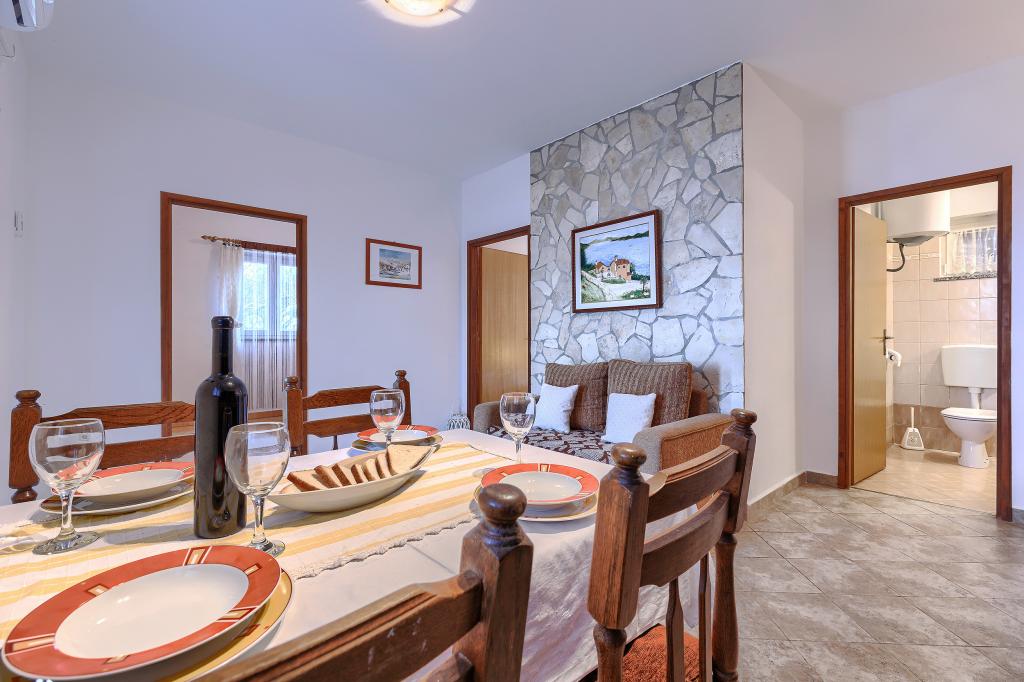 Casă cu mai multe apartamente în satul Drenje. Este situată la 5 minute de mers cu mașina de plajă, la 15 minute de orașul Labin. Apartamentele sunt situate la parter. Apartamentele oferă intimitate completă și posibilitatea de relaxare și odihnă. Un apartament are 42 de metri pătrați, un dormitor cu pat dublu și posibilitatea de a utiliza un pat suplimentar. Living cu sufragerie, bucătărie cu toate electrocasnicele necesare, terasă cu vedere la mare, baie. Al doilea apartament are 56 de metri pătrați, două dormitoare fiecare cu pat dublu. Living cu sufragerie, bucătărie cu toate electrocasnicele necesare, terasă cu vedere la mare, baie. Cel mai apropiat restaurant se află la 5 minute de mers cu mașina, la fel ca și cea mai apropiată piață. Apartamentele sunt situate într-o locație liniștită, cu un mediu natural plăcut - tot ce ai nevoie pentru o vacanță perfectă!