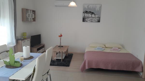 Apartamentele Turan 1 și 2 se află pe Biva, o parte elită și liniștită din Rijeka, la numai 3, 5 km de centrul turistic din Opatija și la 2, 5 km de complexul de piscină Kantrida. Acestea sunt situate la parterul unei case familiale cu intrări separate și terase și o curte potrivită pentru plajă și copii. Apartamentele sunt la 850 m distanță de pietriș complet echipat, plaje de beton sau stânci (dușuri, instalații sanitare, catering). Supermarketul LIDL se află la 2, 3 km distanță. Apartamentele sunt dotate cu un pat dublu într-o cameră separată și o canapea extensibilă în living, bucătărie și baie, mașină de spălat, aer condiționat, TV prin satelit, internet gratuit, Wi Fi, filtru de cafea, ceainic și lenjerie de pat prosoape.