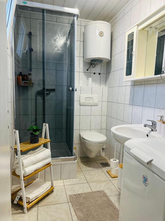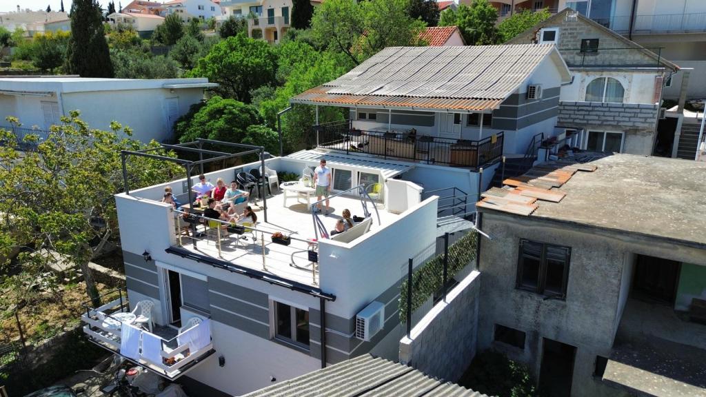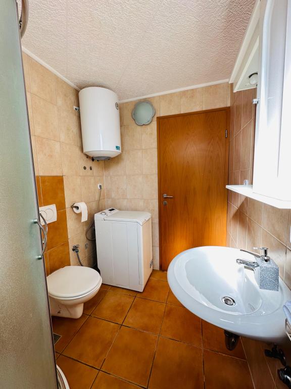 Casă spațioasă pentru până la 16 persoane, ideală pentru familii mai mari sau grupuri de prieteni care doresc să se bucure de o vacanță lângă mare. Oaspeții au la dispoziție o terasă mare de 50 m² cu o priveliște frumoasă la mare, perfectă pentru întâlniri sociale, mese în aer liber și pentru a admira apusurile de soare. Există, de asemenea, un grătar pe gaz pe terasă, ideal pentru prepararea unor mese delicioase într-o atmosferă relaxantă. În fața casei este prevăzută o parcare pentru 5 mașini, iar 5 biciclete sunt disponibile oaspeților, perfecte pentru explorarea împrejurimilor și plimbări plăcute pe malul mării. Casa este situată într-o locație excelentă, la doar 150 m de mare și de plajă, înconjurată de verdeață și umbră naturală, oferind o combinație perfectă de confort, intimitate și apropiere de toate facilitățile pentru o vacanță de neuitat.
