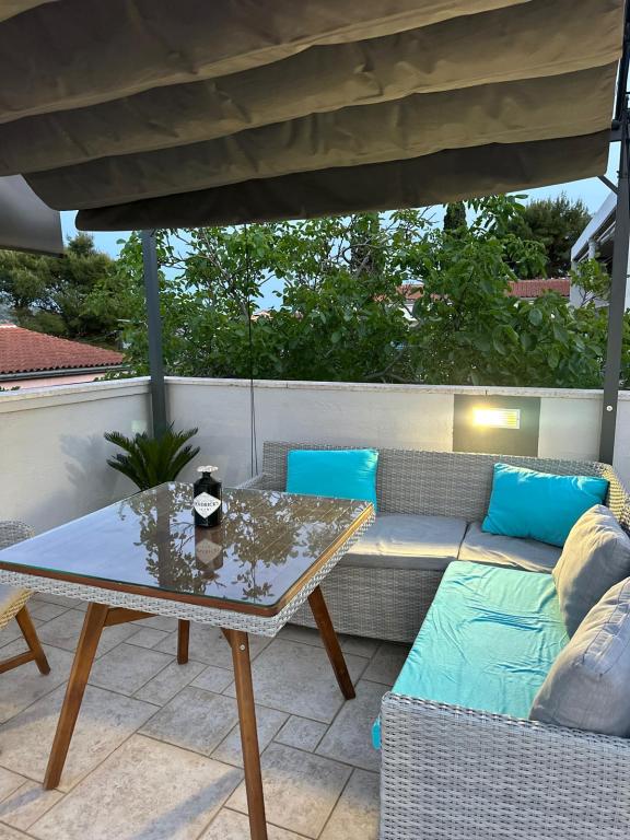 Apartamentele se află la doar 150 m de mare și de plajă, situate într-un mediu natural plăcut, cu mulți copaci care oferă umbră naturală și o ambianță ideală pentru relaxare în zilele fierbinți de vară. Există un duș pe plajă, iar chiar lângă plajă există o cafenea, perfectă pentru o cafea de dimineață sau o băutură răcoritoare la malul mării. Supermarketul Tommy poate fi accesat printr-o plimbare relaxantă de-a lungul mării în doar 12 minute, ceea ce face locația foarte practică pentru o vacanță plăcută și lipsită de griji.