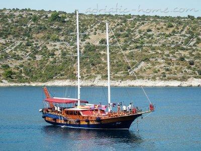 Apartamentele Kanica sunt situate într-un sat mic Kanica, de lângă orașul Rogoznica, Primosten și centru turistic de Sibenik. Kanica Bay este considerat unul dintre cele mai frumoase la Marea Adriatică. Mare curată și distanța de la zgomotul de zi cu zi Kanica face un loc ideal pentru o vacanță liniștită. Apartamentele Kanica sunt la doar 5 metri de mare, plajă privată. Apartamentul parter cu o bucătărie și zonă de luat masa, baie și toaletă. La primul etaj sunt 2 apartamente, fiecare cu o bucătărie, baie si terasa cu vedere la mare. Bucătăriile sunt complet echipate (cuptor cu microunde, frigider, congelator, tacâmuri și veselă).