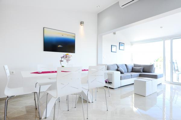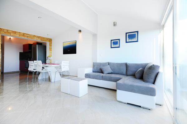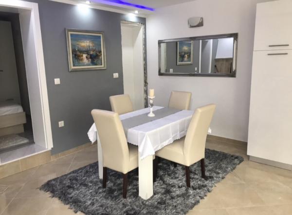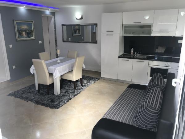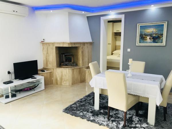 Două apartamente noi într-o parte liniștită a Rogoznica, oferă tot ce ai nevoie pentru odihnă completă și relaxare, pace, distanta de zgomotul orasului, loc privat pe plajă cu șezlonguri și umbrele, posibilitatea de a inchiria o barca pentru a explora și de tur insulele din jur. Vedere de pe terasa de tot drumul la far Mulo și insulele din jur .. În apropiere este centrul de Rogoznica, la numai 7 minute cu mașina, aveți posibilitatea de a vizita orașul de Primosten. Așteptăm cu nerăbdare să te văd!