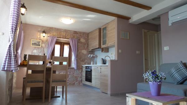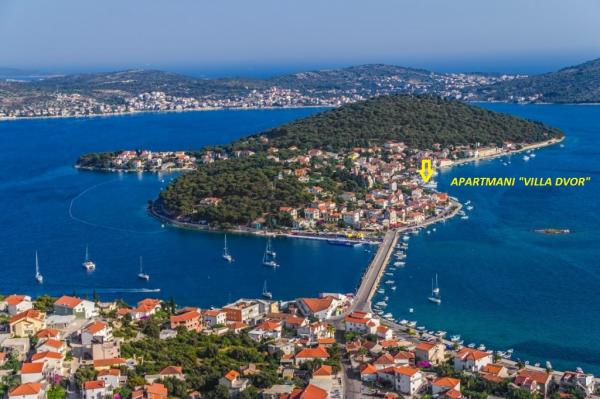 Dalmația este cunoscut pentru casele sale vechi de piatră, așa că, dacă ați dorit vreodată să stați și să simtă atmosfera care oferă aceasta este ocazia potrivita pentru tine. Villa Dvor este o ocazie unică de a vacanta într-o casă tradițională din piatră dalmată construit în urmă cu mai mulți ani. Casa este complet renovat 2014, și conține trei apartamente identice dispuse pe trei etaje, cu o intrare de la scara interioara. Fiecare apartament are o vedere minunată la mare, care este de numai zece metri. Casa este situată în centrul orașului Rogoznica, pe malul apei, langa mare. Toate dotările esențiale sunt la îndemână: un restaurant, cafenea și magazine sunt situate până la 50 de metri ... Bine ai venit!