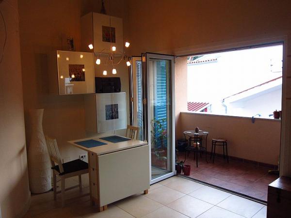apartament modern și recent decorate într-un cartier frumos și liniștit de Rovinj, înconjurat de pini, la 200 m de la mare (plajă), la primul etaj al unui bloc cu 4 apartamente. Tipuri de camere este amenajata modern si este compus dintr-un living, bucatarie, dormitoare, bai, balcoane si galeriile superioare.