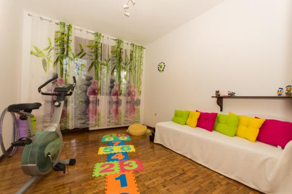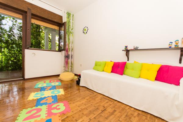 Taxa de rezidenta este inclusa in pret.Apartament Lorenzo are o terasă mare și umbroasă (34m2), grădină (800m2), curte cu gresie (70m2), 3 dormitoare (prima cameră = pat dublu, vedere spre Trogir simbol: Catedrala Sf. Ioan, a doua cameră = pat dublu pentru o persoană, ieșire la terasă, a treia cameră = pat dublu, vedere spre verdeață și grădină), coridor lung decorat cu picturi vechi Trogir, baie (cadă, mașină de spălat nouă, uscător de păr, articole de toaletă gratuite, o bucatarie noua (bideu, chiuveta, toaleta), camera de recreatie suplimentara (bicicleta acasa, facilitati pentru copii, birou), living spatios (televiziune prin satelit, linie, aer conditionat ...) o mașină de spălat vase, un garaj și o grilă detașată