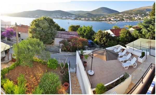 Apartamentele sunt situate în Vuko Seget Vranjica, 4 km vest de orașul Trogir. Apartamentele sunt poziționate în al doilea rând de la mare. Apartamentul O suprafață este de 55 m2, terasa mare de m2, cu vedere la mare 20, apartamentul este dotat cu aer condiționat, televiziune prin satelit și internet wireless Apartament suprafața B + 55 m Lacrimi de 13 m2, cu vedere la mare, apartmnan este echipat cu aer condiționat, televiziune prin satelit si internet wireless. Fiecare suită are o cabină de duș separată în aer liber și loc de parcare acoperit.