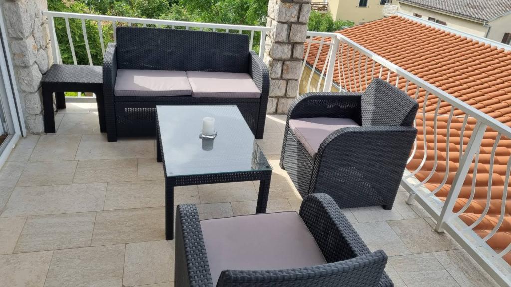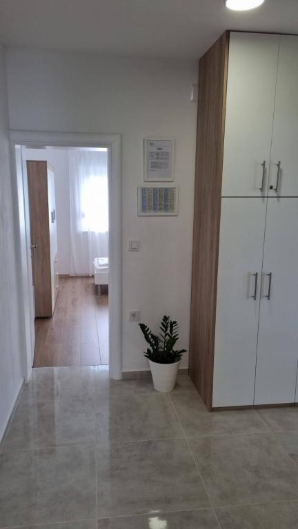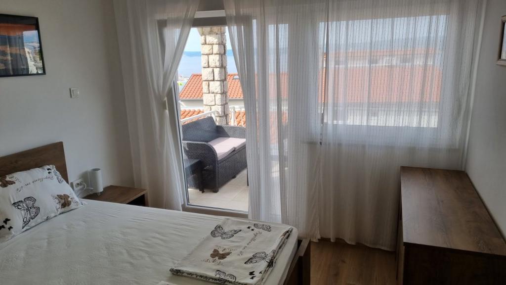 Închiriez un apartament cu două dormitoare, o terasă mare și vedere la mare. Apartamentul este situat pe o stradă liniștită, la 200 de metri de mare, plajă și centrul orașului Selce.