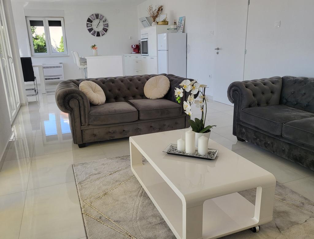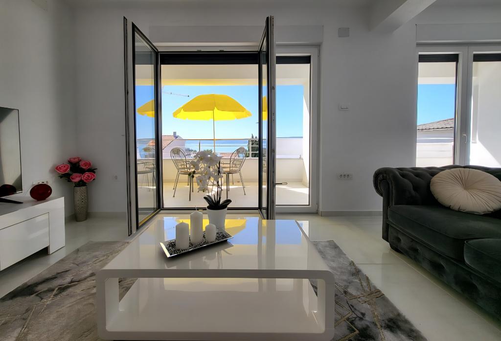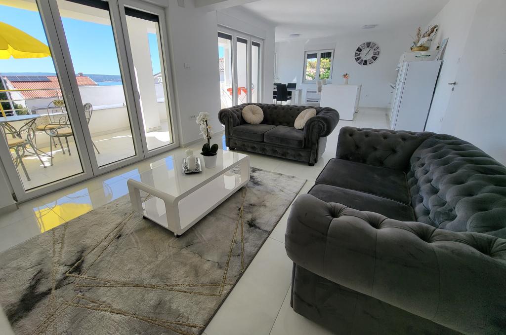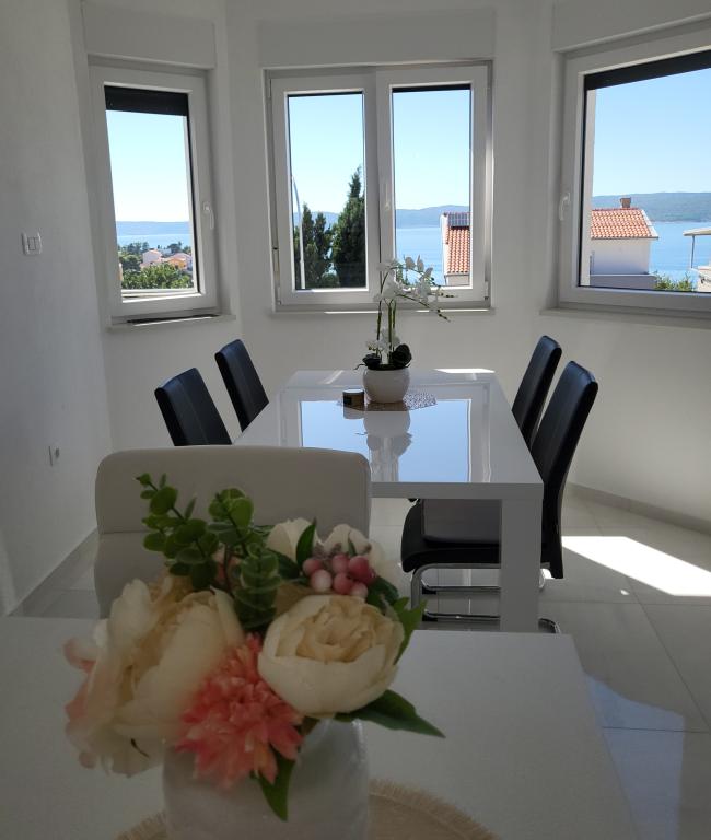 Apartamente noi în centrul orașului Selce, un oraș mic și pitoresc de pe coasta Adriaticii, foarte aproape de Crikvenica - sunt situate la parterul superior și la primul etaj al casei, fiind spațioase și aerisite. Ambele apartamente sunt formate din două dormitoare, baie, hol, bucătărie „open space”, sufragerie și living și balcon. Au o vedere frumoasă la mare și la plajă. Apartamentele sunt situate la 2 minute de mers pe jos de centrul orașului, magazine, promenadă, plajă, restaurante și cafenele. Parcarea se află în curtea casei. Aerul condiționat, wi-fi și parcarea sunt incluse în prețul cazării. Prețul include taxa de turist (ședere) și curățenia apartamentului. ANIMALELE DE COMPANIE NU SUNT PERMISE.