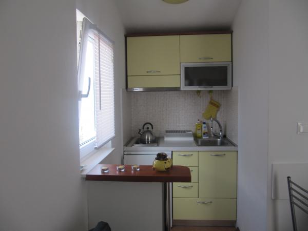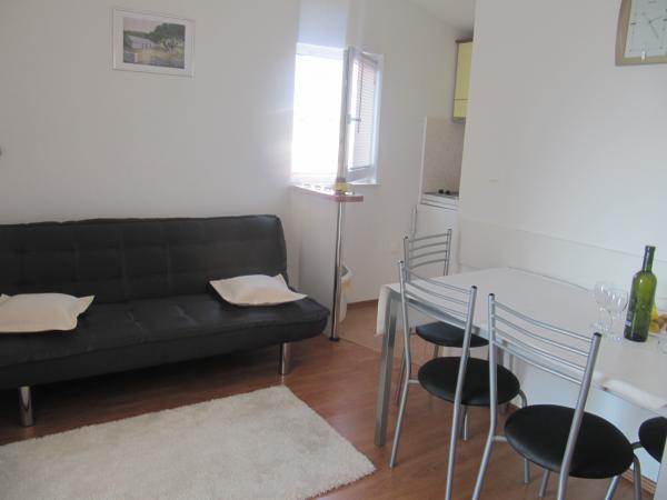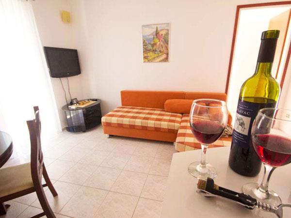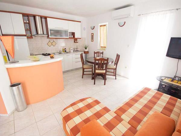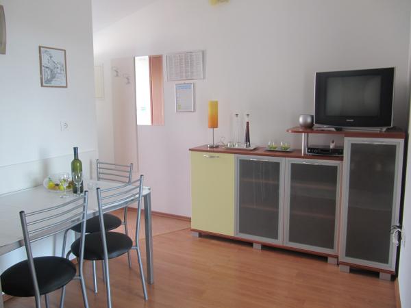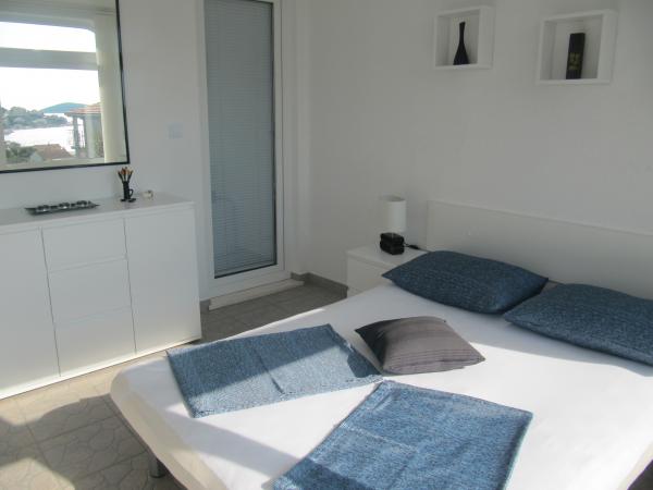 Apartamentul este situat la parter, spațioase și bine echipate cu tot ce ai nevoie în bucătărie. Pat dublu în cameră era doar să se uite un pic rigid, dar foarte confortabil pentru dormit. Aici am stat o săptămână. Nu a fost lent și bine lucrat. De pe terasa si balcon cu o vedere frumoasă la mare. Gazdele au fost foarte prietenos și ne-a onorat cu vin și smochine. Plajele nu sunt departe (4 min de mers pe jos), iar localnicii au catârii lor la vest a casei, pe care am folosit. Este perfect apa limpede. Rămâi cu Mirjana și Branka într-adevăr ne-a plăcut și a vrut să se întoarcă aici.