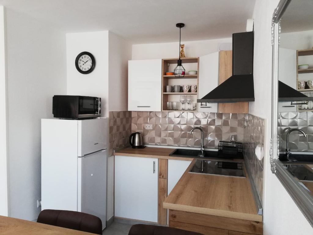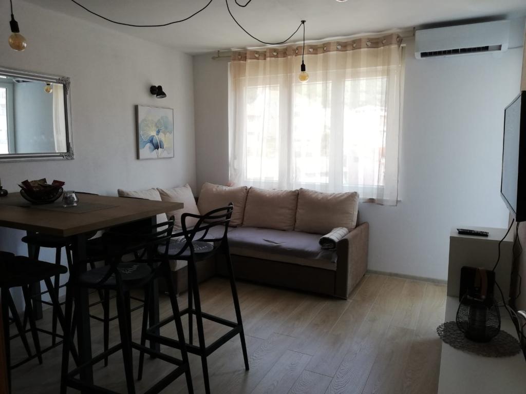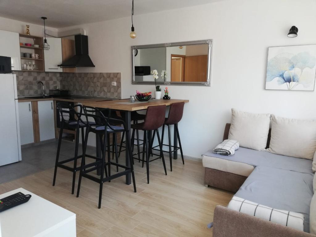 Apartament utilat complet si modern intr-un cartier linistit, situat intr-un bloc rezidential la etajul 5. Facilitatea este situata la 15 minute de mers pe jos de centru si la 10 minute de mers cu masina de plaja.