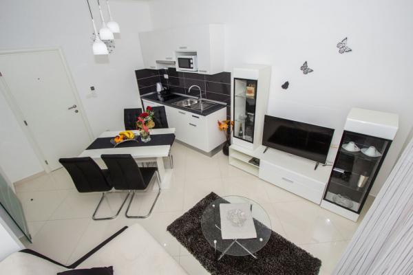 Noile apartamente modern mobilate în Sibenik, aproape de catedrala St. James. Se compune dintr-o bucatarie, living, dormitor și baie. Apartamentele sunt situate în imediata apropiere de magazine, restaurante, banci, oficiu postal. Banj Plaja este la 500 de metri. Este disponibilă o parcare publică în apropiere și nu au nevoie pentru a rezerva.
