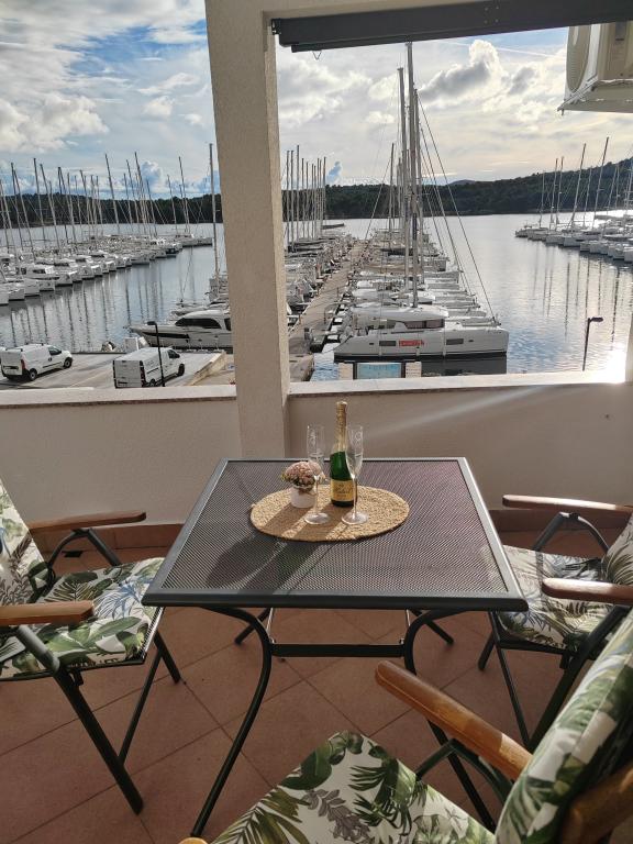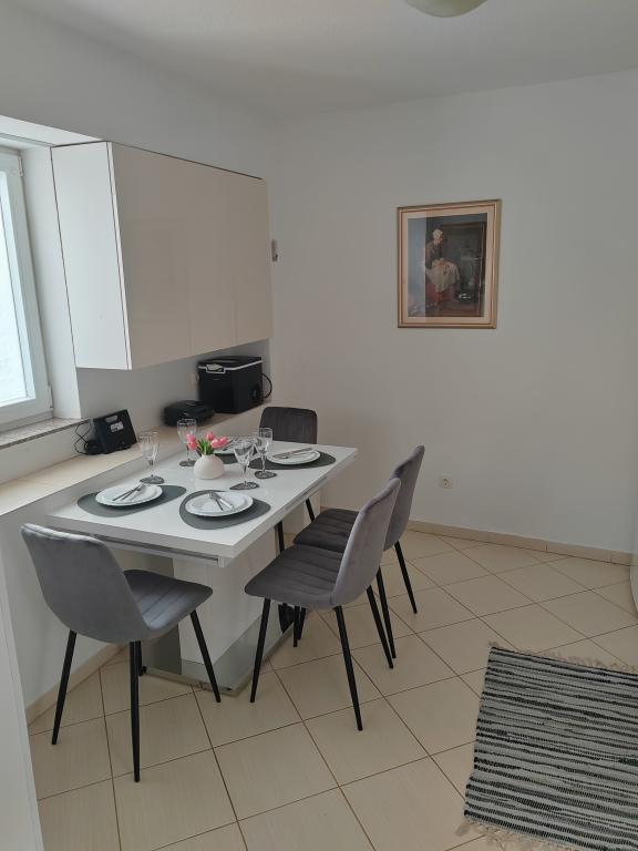 Casa este situată pe peninsula Mandalina din Šibenik, cu vedere la mare (marină pentru iahturi). Cu două dormitoare, două băi, living, sufragerie cu bucătărie și terasă cu duș exterior. La 5 minute de mers cu mașina de centrul orașului și supermarket, la 10 minute de mers cu mașina de prima plajă.