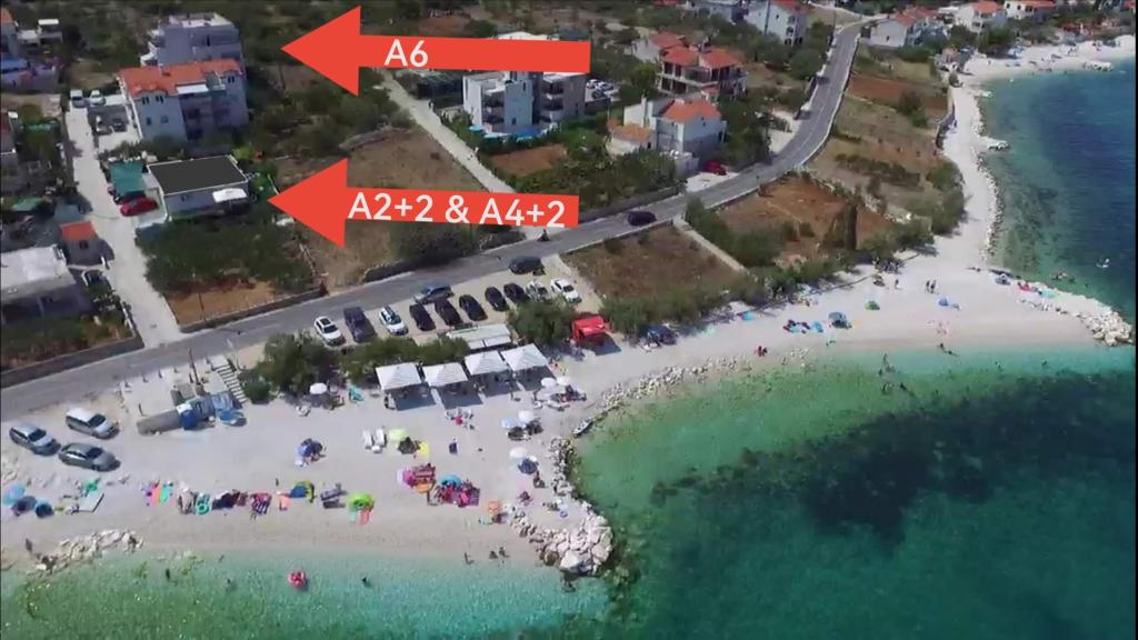 Bună ziua! Mă bucur să vă prezint apartamentele din Slatine, pe insula Čiovo! Apartamentele sunt situate în Slatine, în imediata apropiere a mării, la 10m (plaja din imagine), într-un loc liniștit, plăcut pentru o vacanță în familie. A6 este situat la 30 de metri deasupra celorlalte două apartamente, deci A6 se află la 40m de plajă. Apartamentele sunt dotate cu aer condiționat, internet, televizor și antenă satelit. Parcarea este asigurată pentru toate vehiculele oaspeților. Ne vedem în Slatine.