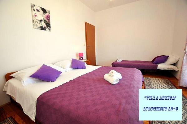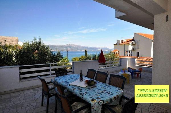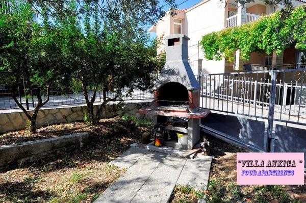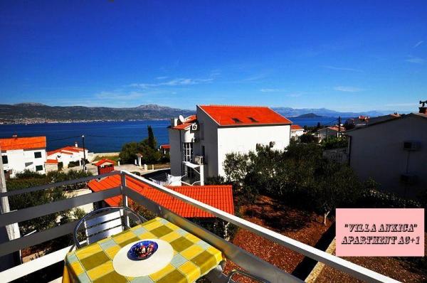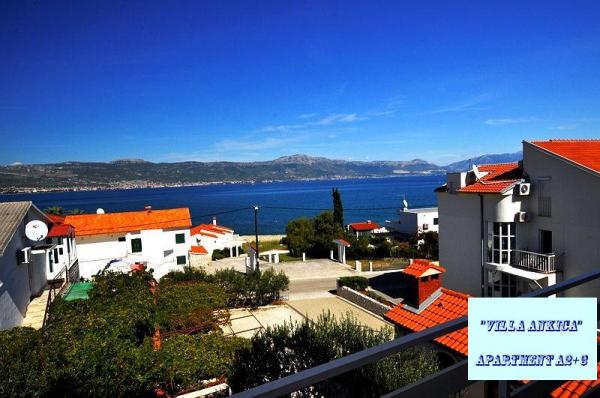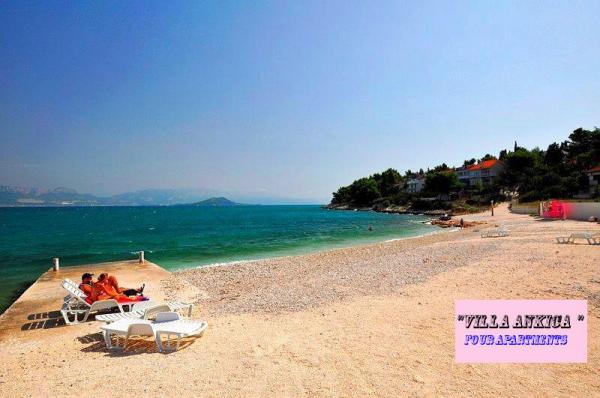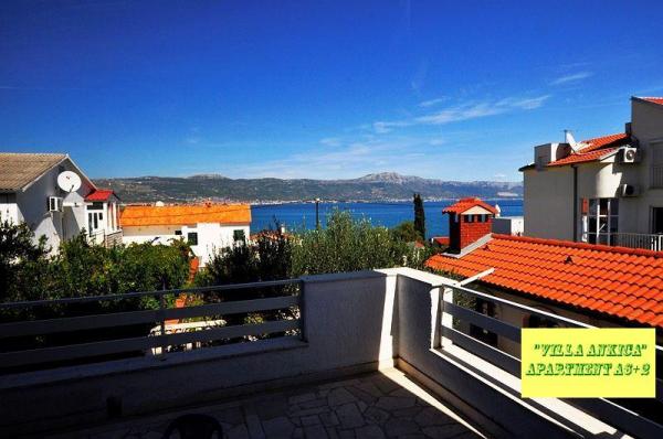 Vila Ankica este situată în Slatine, pe insula Ciovo, la 4,5 km de Trogir, unul dintre cele mai frumoase orașe de pe coasta Adriaticii, protejată de UNESCO. Vila se află la aproximativ 1 oră cu mașina de parcul național Krka. Vila este situată pe o suprafață de 1100 mp. Capacitatea vilei este de până la 20 de persoane. La parter se află apartamentul A6. La primul etaj sunt apartamente A4j și aplicație. A3 2. La etajul doi se află aplicația. A4. Într-un mediu liniștit vă puteți bucura de vacanța într-unul din cele patru apartamente noastre moderne, cu o vedere frumoasă la mare. Fiecare apartament este dotat cu aer condiționat, TV prin satelit și terasă mare. În timpul vacanței, mașina, bicicleta sau barca dvs. vor fi în siguranță în parcarea noastră mare închisă. Pe grătarul din frumoasa grădină puteți pregăti specialități dalmate și bucurați-vă de vinurile noastre locale, de brandie, lichioruri și ulei ecologic de măsline.