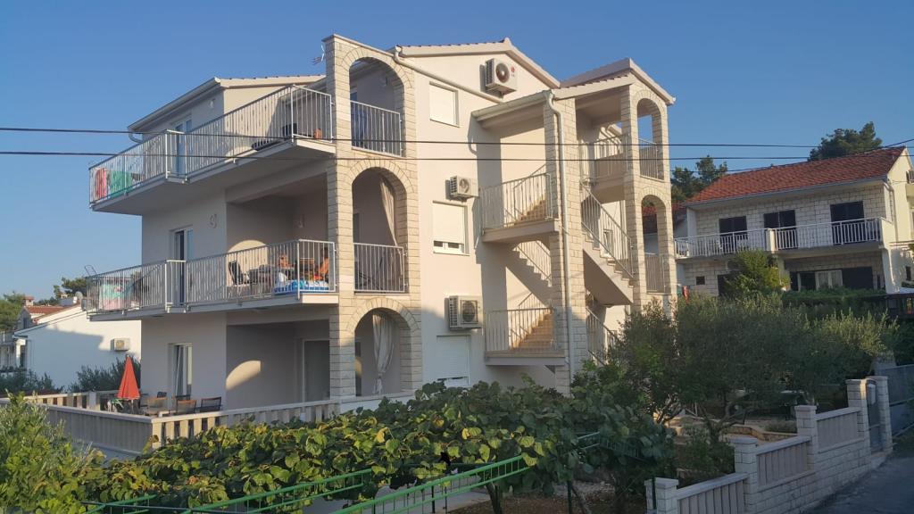 apartamente foarte bine întreținute, bine întreținute și bine întreținute. Proprietarii vin la maxim pentru a se întâlni. Apartamentele au o vedere frumoasă la Kaštelská riviéra și, în parte, la Split. La plaja 30 m. Plaja nu este aglomerată de turiști, astfel încât să puteți alege fiecare loc. În Trogir, la 4 km, care este magnifică de construcția veche. este la doar o scurtă distanță de mall-ul Kaufland și Leidl. Încă 100m de apartament este un mic magazin de Tommy, care este bine aprovizionat. Vă recomandăm cu tărie.