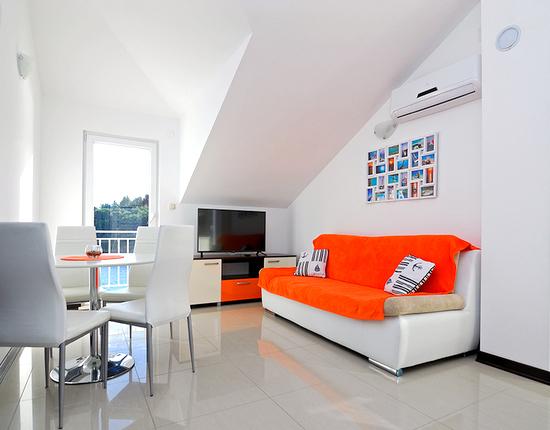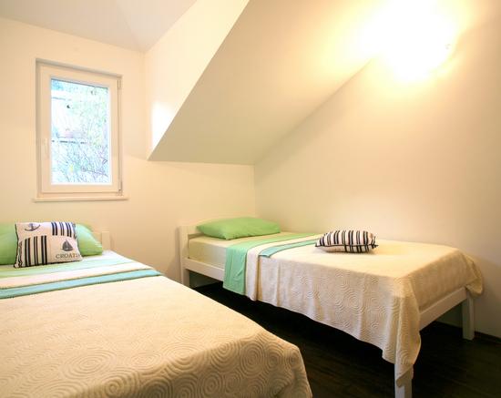 Apartamentul recent renovat Ogi este situat la ultimul etaj al unei case de familie direct lângă mare într-un golf liniștit de Gornje Krušice, cu o priveliște frumoasă a mării și a dealurilor verzi de cealaltă parte a golfului. Oaspeții vor găsi aici tot ce aveți nevoie pentru distracție la mare și descoperirea golfurilor vecine. Acest apartament însorit are o cameră de zi deschisă cu canapea, TV cu ecran plat, masă și o bucătărie frumoasă, complet utilată. Din camera de zi vă ieșiți pe unul dintre cele două balcoane, unde vă veți bucura de ambianța frumoasă. Apartamentul Ogi are două dormitoare, unul cu un pat dublu, iar celălalt cu două paturi de o persoană. Baia decorată modern are duș și toaletă. În grădină puteți găsi struguri, smochine, lămâi ... La dispoziția dvs. aveți o terasă în fața apartamentului și un loc ascuns sub măslini, precum și un grătar în aer liber, unde puteți găti pește, carne sau legume proaspete ... delicatese de vară. În acest golf frumos, cu ape limpezi și limpezi, vă veți bucura de plăcerea de a înota și de a vă scufunda în voința voinței.