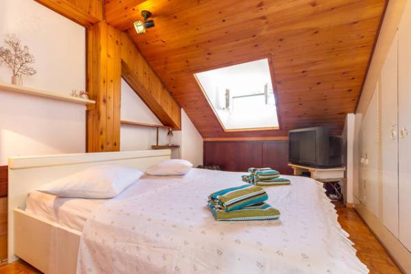 Apartamentul este situat într-o casă privată, care este de 70 de ani vila veche a fost Leontić, în centrul orașului, la 800 de metri de palatul, într-un cartier liniștit, casa este înconjurată de verdeață și palmieri, oaspeții au propriile lor de parcare privată, iar centrul este la numai câteva minute pe jos. Apartamentul este situat într-o stradă liniștită, cu vedere la mare, confortabil, confortabil și o mare de 80 m2, are două dormitoare, unul și celălalt au un pat dublu pentru două persoane, un living mare de 35 m2 și un pat suplimentar pentru două persoane. Apartamentul este potrivit pentru șase persoane. Camera de zi are o terasă cu vedere la mare și zona verde din jurul casei. In camera de zi este un televizor LCD mare, cu peste 40 de canale. Acesta este disponibil 24/7.