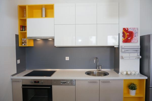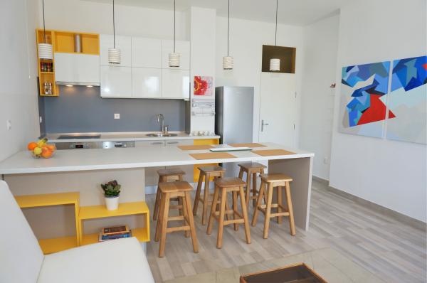 apartament modern de brand nou este situat în apropiere de una dintre cele mai frumoase plaje din Split - Znjan. Apartamentul luminos și spațios este mobilat nou și complet echipate cu tot ce aveti nevoie pentru un sejur confortabil. Apartamentul are o terasă mare, cu o grădină, care are vedere la mare. Se compune dintr-o bucătărie complet utilată, deschis living / sufragerie, dormitor cu un pat dublu și un pat supraetajat, doua bai - una cu baie, iar cealaltă cu duș, terasa mare cu grădină și o zonă de relaxare în aer liber. Facilitățile includ: aer condiționat, încălzire, TV LCD, bucătărie complet echipată cu frigider, aragaz, cuptor, veselă, mașină de spălat vase, mașină de spălat, uscător de păr, fier de călcat