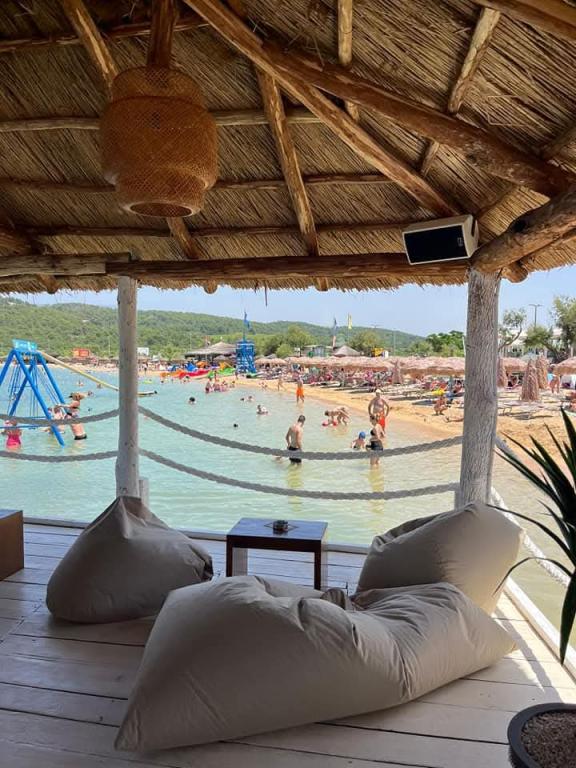 Apartamentele sunt situate în frumosul golf Stara Novalja, pe insula Pag. Toate apartamentele au terasă cu vedere la mare, TV prin satelit și internet wifi. Apartamentele 2+2 sunt dotate cu aer condiționat, în timp ce apartamentul 6+2 are ventilatoare de tavan. Familiile și animalele de companie mici sunt binevenite. Prețul include toate taxele, utilizarea aerului condiționat, TV prin satelit, parcare și lenjerie de pat.