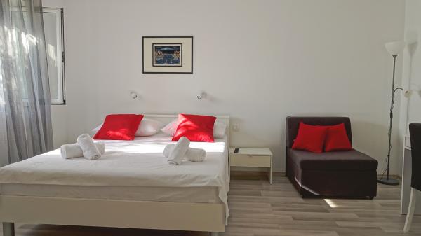 Apartament cu Boris complet nou construite și echipate. Cu toate situate într-o locație liniștită, centrul se află la numai 100 de metri de numeroasele restaurante, cafenele, magazine precum și un centru de sport, care oferă posibilitatea de a juca tenis, închiria o gondolă, bărci cu pedale, o școală de scufundări și mai mult ... Apartamentul este situat la 10m de mare, unde plaja oferă vedere frumoasă a insulei Brac și Solta. Dacă doriți ca să se odihnească, dar, de asemenea, un apartament distractiv Boris este alegerea ideala pentru tine.